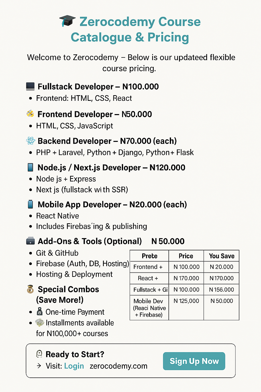 Welcome to Zerocodemy β Below is our updated and flexible course pricing.